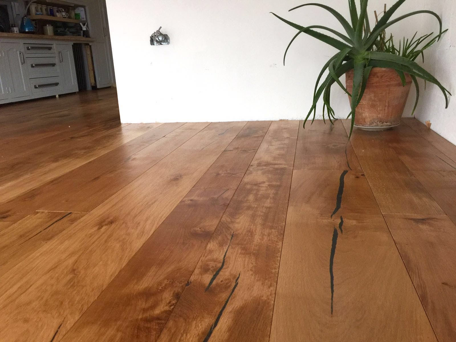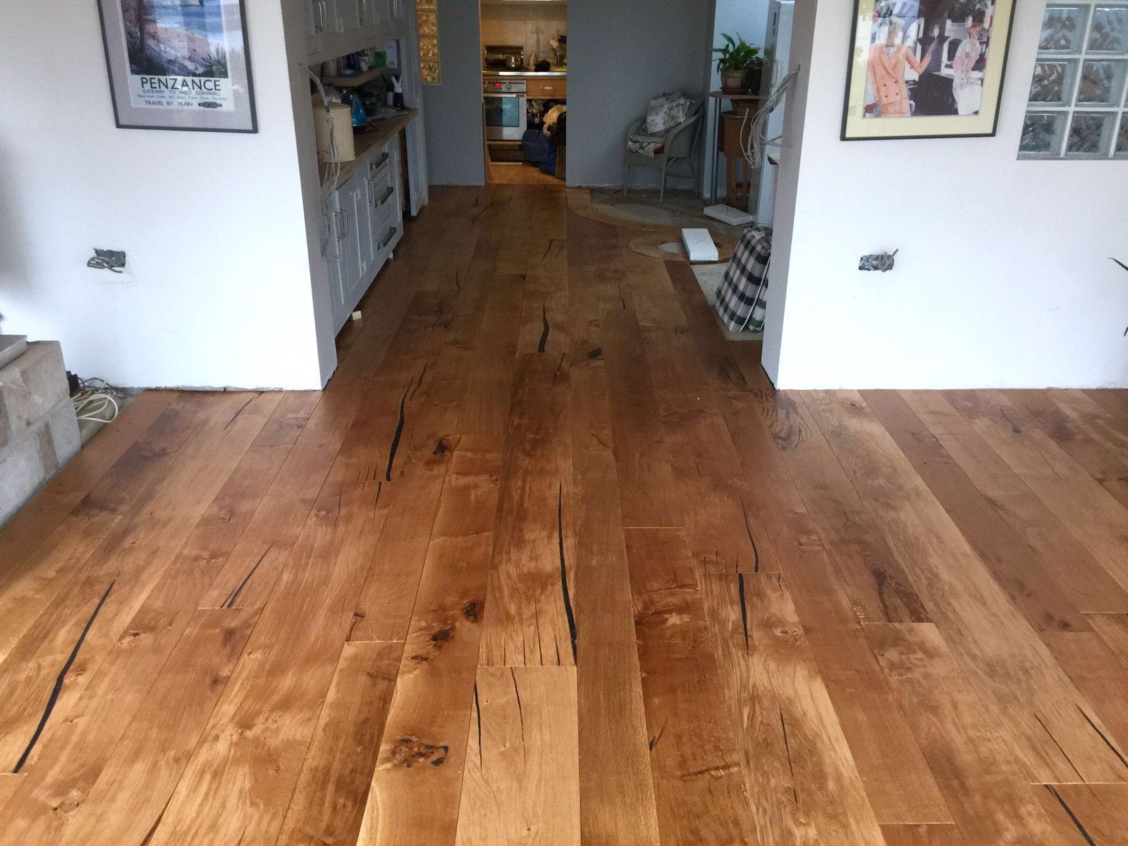 An installation in Penzance, featuring Tregothnan oak flooring. Our client was seeking to enhance the kitchen area in her art deco house that overlooked Mount’s Bay.