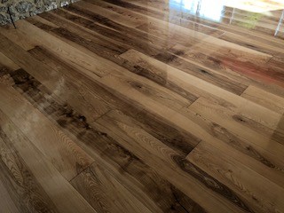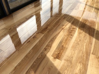 New ash flooring in a property in Devon, with a fine finish by Aspen and Ash. The floor was finished with a lacquer that brought out the colours and grain of the wood to a delighted customer