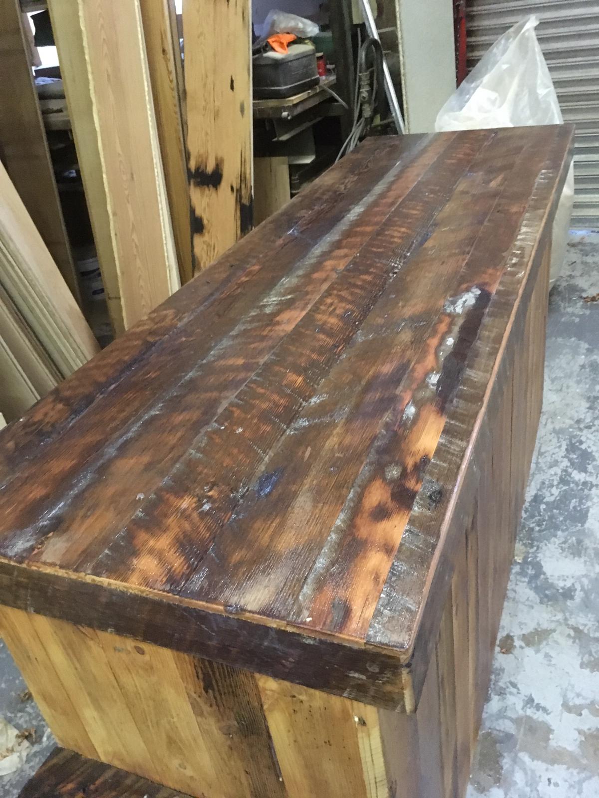The bar top is made from 80-year-old outer core Douglas Fir and the front from 120-year-old yellow pine, creating a great 12ft long bar that exudes class.